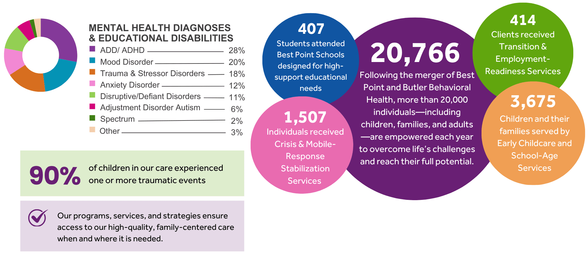 Our programs & services cover a wide continuum, including early childhood, education, autism services, and community-based mental health services.